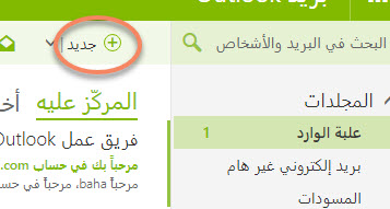 1. لكتابة رسالة جديدة قم بالنقر في الصفحة الرئيسية للبريد الالكتروني الخاص بك على جديد: